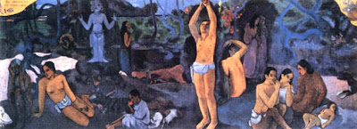 O nascimento e a morte delimitam o circuito das actividades humanas que são apresentadas nesta obra. Gauguin montou aqui um palco da vida, que se estende numa diversificação cintilante. O recém-nascido, que vive o seu primeiro dia deitado na relva, marca uma delimitação deste palco, a pobre velha que parece só olhar para o passado marca outra. Entre as duas está representado o mundo dos adultos, com os seus medos e alegrias. O ídolo desconhecido que espreita do fundo e os dois peregrinos, talvez um par amoroso, têm um papel mediador, enquanto portadores de estado de espírito entre o palco das pessoas e dos bastidores, a Natureza. Cheio de ambição, Gauguin montou neste panorama os seus motivos preferidos, a mulher nua deitada ao sol, o grupo sentado a conversar feliz, a figura de culto.